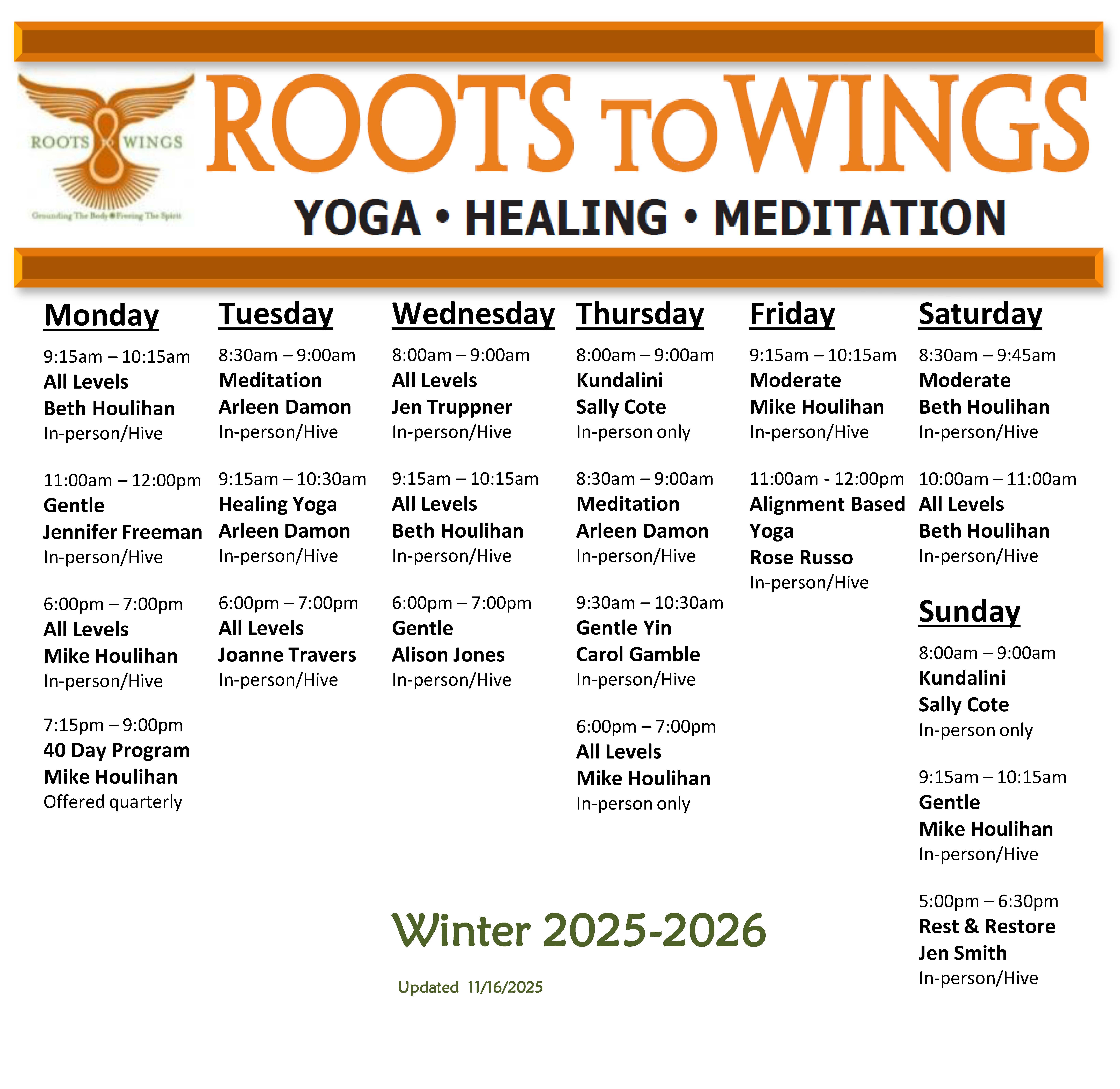 Holiday Schedule: Wednesday 8am & 9:15am (no 6pm) / Closed Thursday / Friday 9:15a Twist Digest & Relax (no 11a)